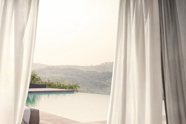 Rideaux textiles pour une protection latérale et des accents chaleureux et classique. Ils créent du confort et une intimité supplémentaire.