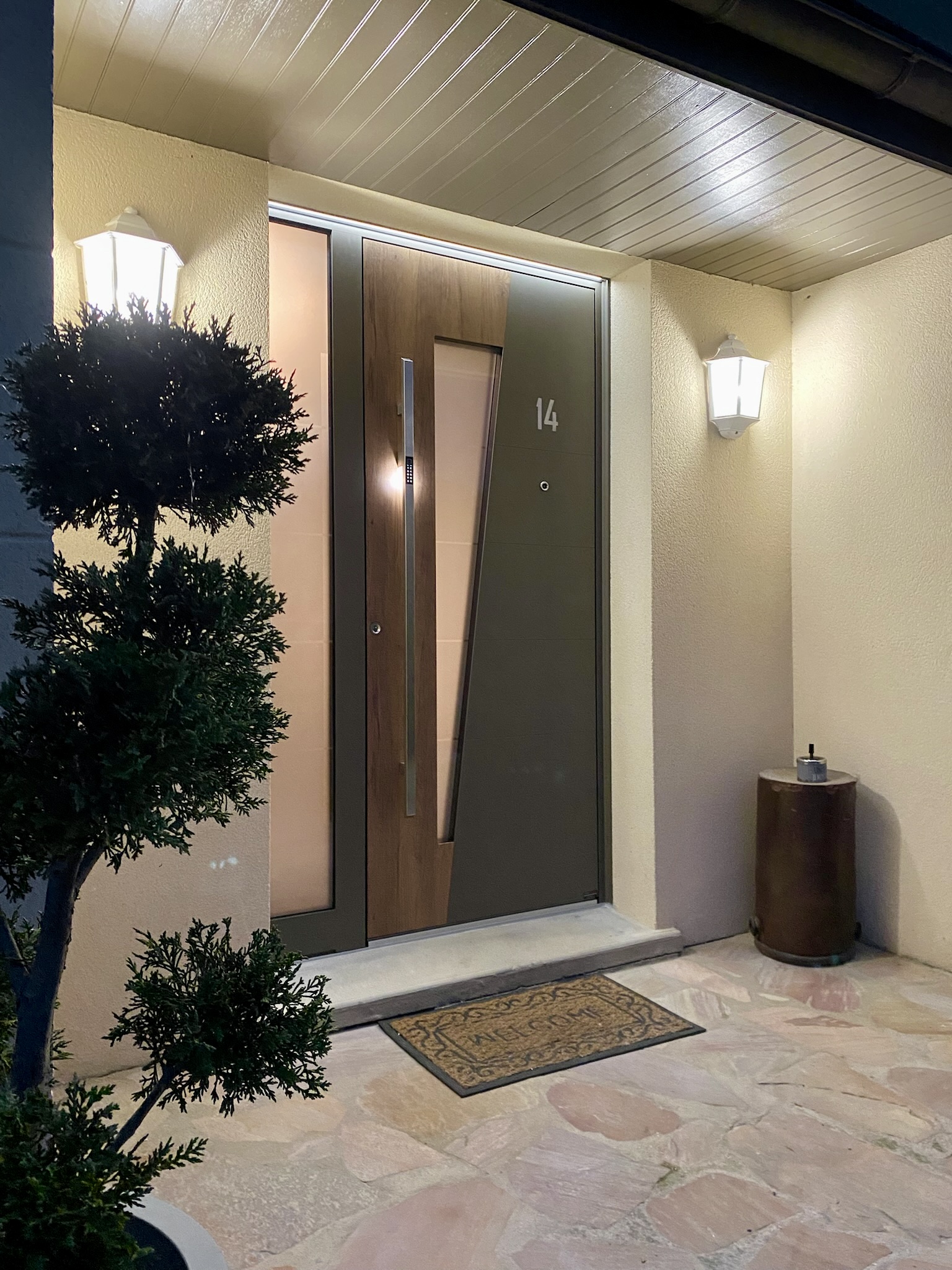 Chaque porte est personnalisable pour refléter votre goût, qu’il s’agisse de la matière, des types de fermetures, ou des accessoires comme le double ou triple vitrage, les serrures biométriques, et bien plus encore.